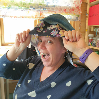 Julie and I decided to kickstart our assault on the Designer Badge by raiding the charity shop bags and playing Sewing Bee. Emma, Julie's 13 year old set us the challenge to make hats.